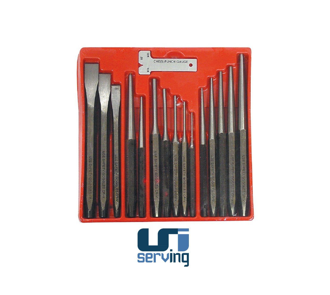 Combination Chisel & Punch Set/Juego Combinado de Cinceles y Punzones, 150 mm, 12’s. IMPA 613089