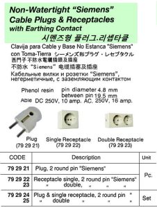 Marine Plug & Double Receptacle/Enchufe Marino y Doble Receptáculo, 2-Round Pin Siemens NWT. IMPA 792925